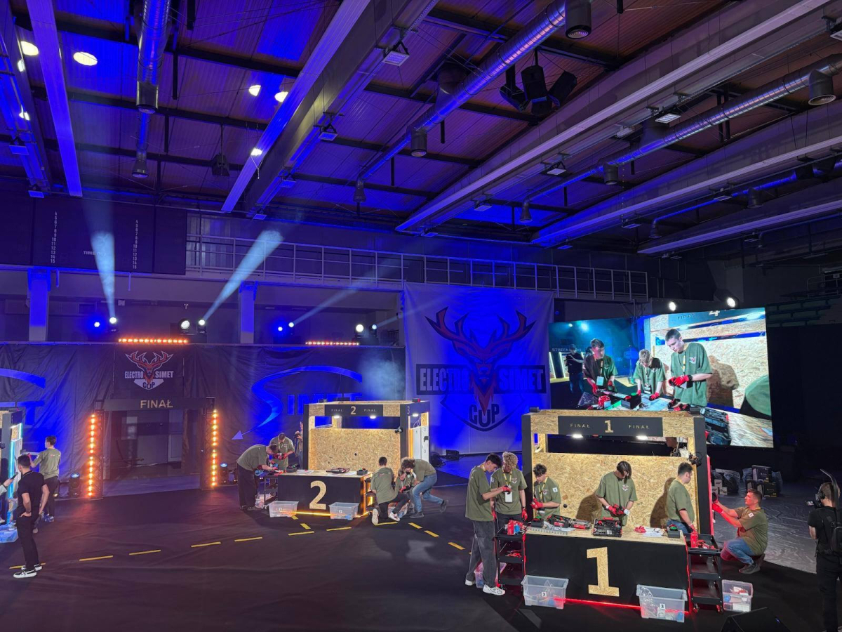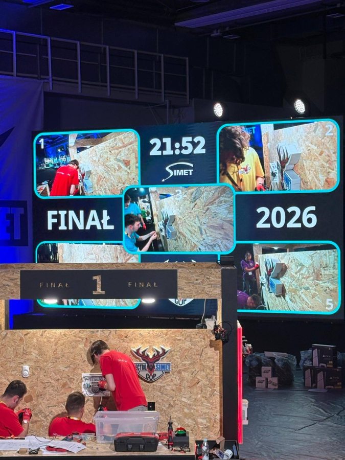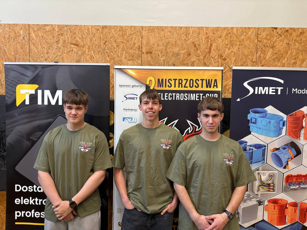 Piątek 17.04, dzień, w którym odbyła się II edycja konkursu ElektroSimet-Cup 2026 w Jeleniej Gorze. I tym razem nie mogło zabraknąć drużyny z naszej szkoły, którą reprezentowali: Dawid Łuniewski, Filip Galant oraz Mikołaj Drozd z klasy 3B. Należy tu podkreślić, iż nasi zawodnicy byli jednymi z najmłodszych uczestników w tej rywalizacji. Nikt nie spodziewał się tak dużego zainteresowania konkursem. W zawodach wystartowały 54 z 56 zakwalifikowanych szkół z całej Polski. Organizatorzy podnieśli poprzeczkę bardzo wysoko. Poziom na jakim została przygotowana impreza przerósł nasze oczekiwania i oczekiwania uczestników. Zawodnicy mieli zapewniony cały wachlarz emocji, od stresu i potu na czole, rywalizację w rozwiązywaniu zagadnień teoretycznych jak i zadań praktycznych, aż po walory smakowe przy poczęstunku, jaki został im zapewniony. Jednym słowem autorzy wydarzenia pomyśleli o wszystkim… Nikt nie wyszedł z tego spotkania z pustymi rękoma, dla każdego były upominki i gadżety, a nagrody główne, jak zwykle imponujące, za co Organizatorom należą się szczególne podziękowania.