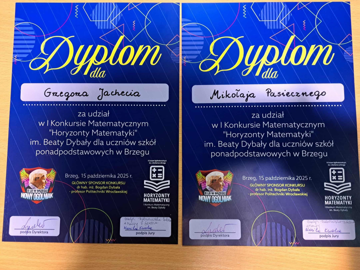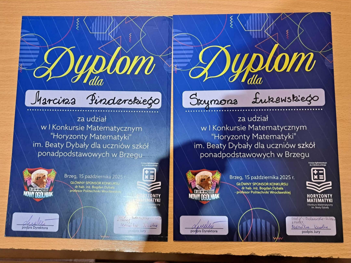Poziom konkursu był bardzo wysoki, a zadania wymagały pomysłowości, logicznego myślenia i wytrwałości w poszukiwaniu rozwiązań. Z dumą informujemy, że do drugiego etapu zakwalifikowało się dwóch naszych uczniów – Szymon Łukawski kl. 5 IJ i Marcin Pinderski kl. 5 IJ