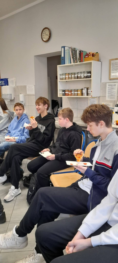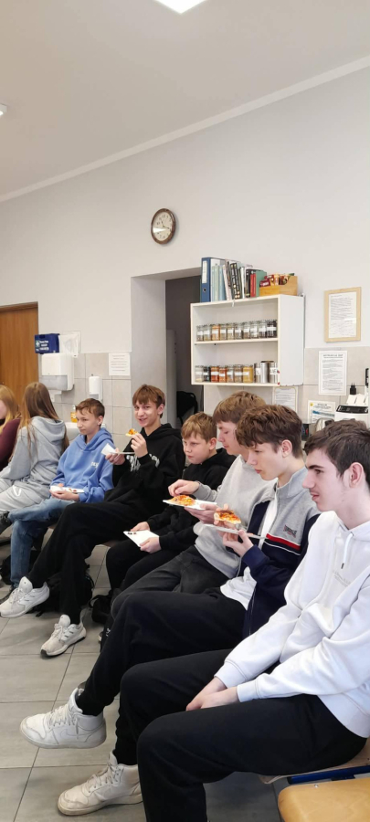 Wczoraj odwiedzili nas uczniowie Szkoły Podstawowej w Makoszycach. Pani Dyrektor oprowadziła znakomitych gości po szkole. Opowiedziała o kierunkach,ofercie edukacyjnej na rok 2026/ 2027, kołach zainteresowań, osiągnięciach szkoły. Następnie w jednej z pracowni gastronomicznej Pani Grażyna Tesarowicz przedstawiła kierunki kucharza, cukiernika oraz technika żywienia i usług gastronomicznych, goście mieli okazję obserwować pracę naszych uczniów a następnie skosztować pysznej pizzy. Dziękujemy za zainteresowanie naszą szkołą i do zobaczenia niebawem.