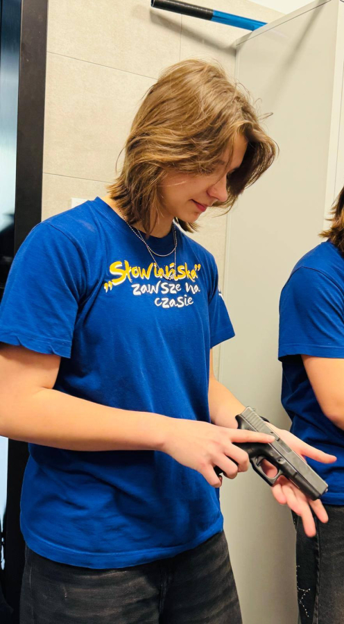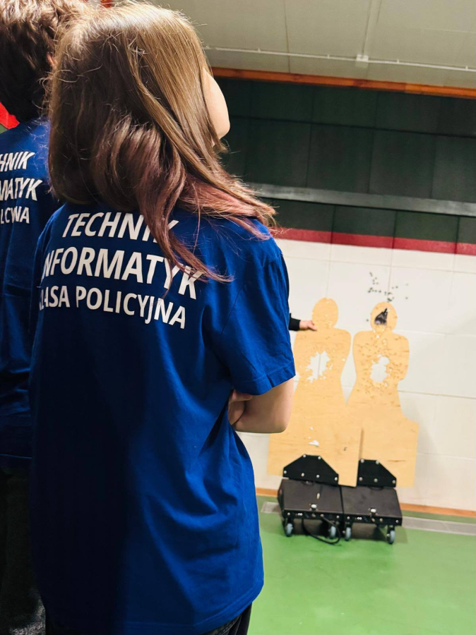 Ostatnim punktem programu były zajęcia na strzelnicy, prowadzone przez asp. szt. Piotra Galusa. Uczniowie zapoznali się z zasadami bezpieczeństwa obowiązującymi podczas pracy z bronią oraz wyposażeniem wykorzystywanym przez policjantów.