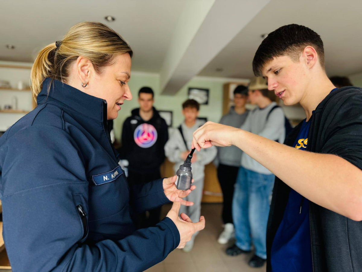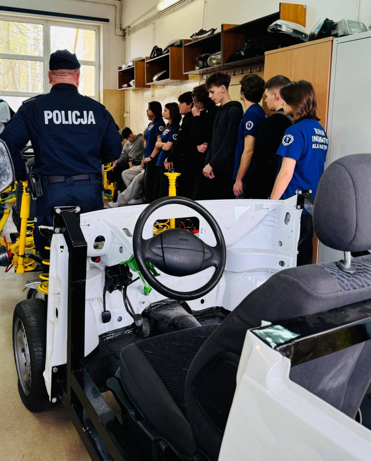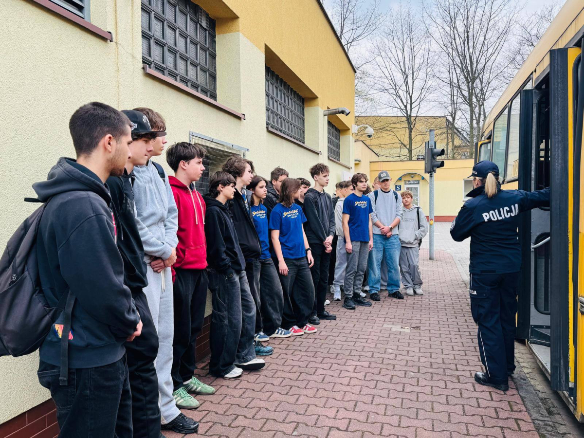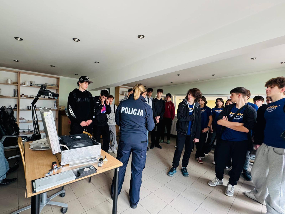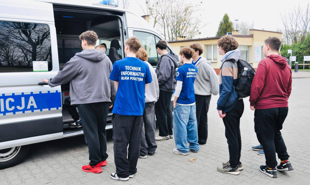 16 kwietnia uczniowie klas Ik i IIk o profilu informatycznym z innowacją „Cyberbezpieczeństwo w sieci” mieli wyjątkową okazję poczuć przedsmak policyjnej służby. Dzięki funkcjonariuszom Szkoły Policji w Katowicach młodzież uczestniczyła w intensywnym dniu pełnym praktycznej wiedzy i pokazów.
