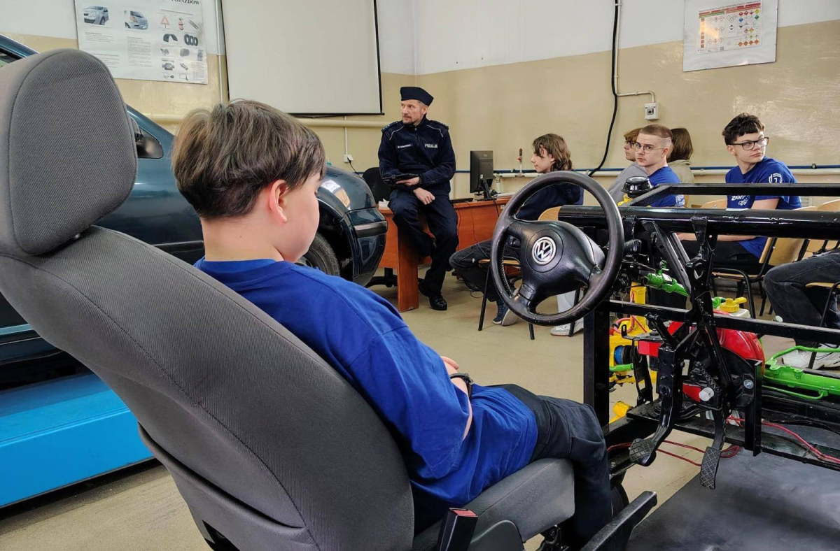 Drugi blok poprowadził kom. Marcin Kurpiński z Wydziału Ruchu Drogowego, przybliżając specyfikę pracy tzw. „drogówki”.