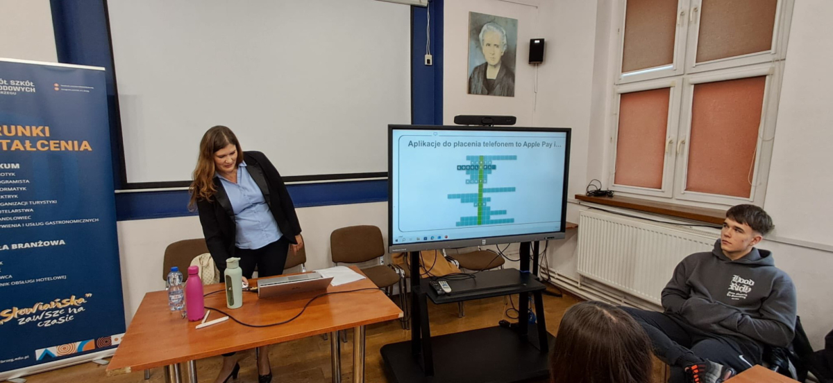 22.10 odbyło się spotkanie ze starszym doradcą klienta indywidualnego jednego z brzeskich oddziałów banku. Uczniowie wysłuchali wykładu o działalności banków i produktach bankowych, następnie wzięli udział w grze interaktywnej sprawdzającej wiedzę o bankowości. Dziękujemy za prezentację Pani Małgorzacie Woźniak. Mamy nadzieję na kolejne ciekawe i merytoryczne spotkania.