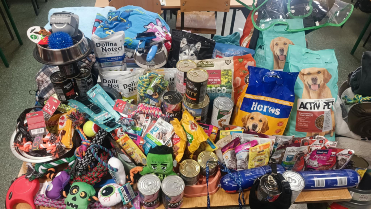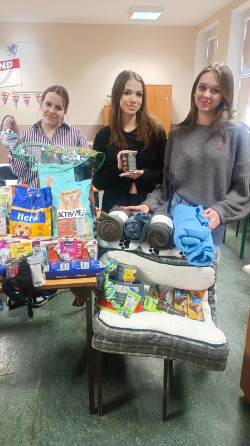 Jak co roku w naszej szkole zorganizowaliśmy akcję zbiórki darów dla” Przytuliska dla bezdomnych psów” w Brzegu. Dzięki ofiarności wielu osób udało się nam zebrać liczne dary rzeczowe: miski, smycze, ubranka, koce i zabawki.